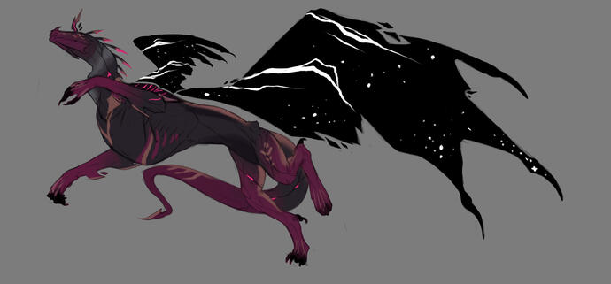 A pose of the oc looking over thier shoulders with thier wings outstretched and a dramatic lighting